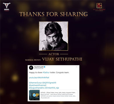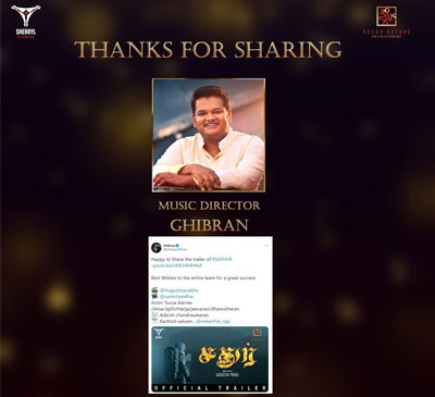 Our Sincere thanks to Actor and Activist Chinna Kalaivanar Padma Shri Vivek(Late) for releasing the trailer on Twitter. Thank You Vijay Sethupathi, the most most Versatile Actor in Tinsle Town and Music Director Ghibran for having released our trailer on Twitter. And a Special thanks to Sheriff, the hot and happening Dance Master for releasing the poster in our Place where it was released.