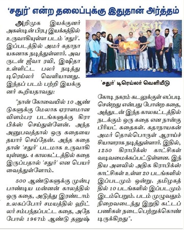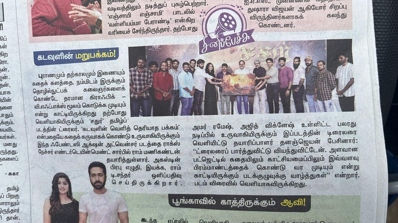 We are happy to present the Poster of "Sathur", the latest Venture of our Production House. Our heartful thanks to Writer, Director and EditorB. Lenin, a multitalented person in film industry for releasing the first look poster of the film at the Cluster Institute of Media and Technology, Coimbatore.